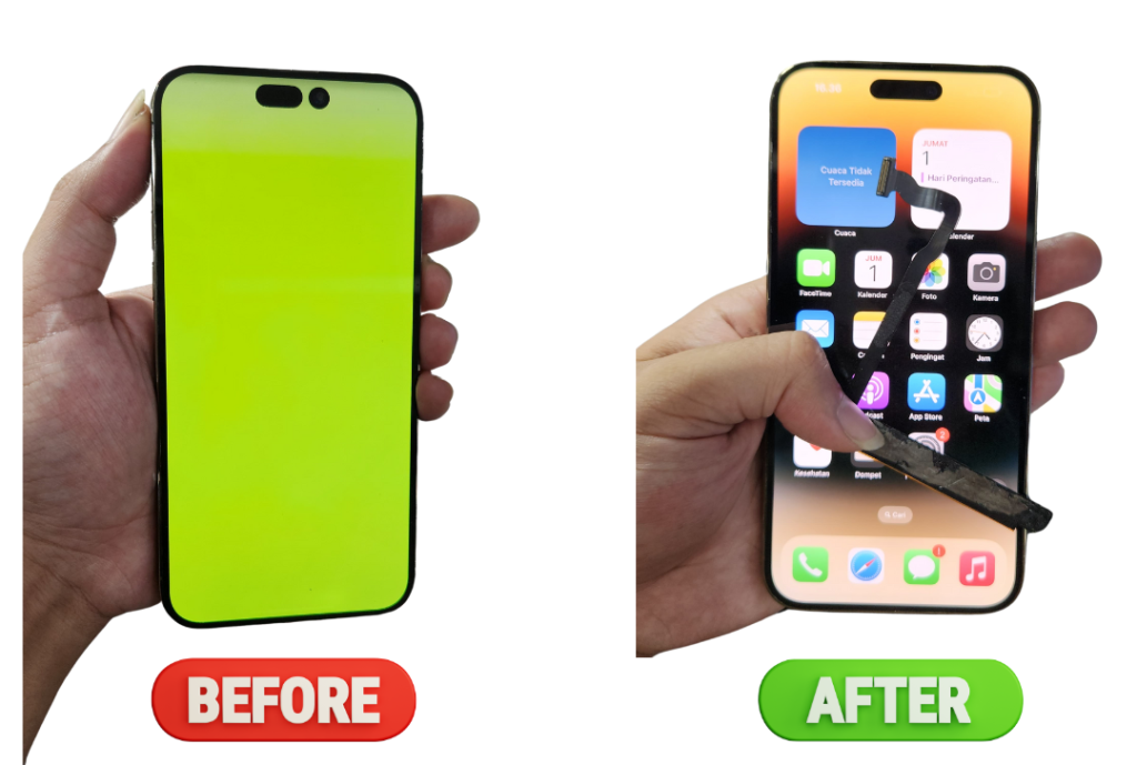 iProFix Bukan Hanya Bisa Service Saja, tapi kami juga bisa untuk Memperbaiki LCD Anda yang mengalami Greenscreen, White Screen, Blank, serta Ganti Kaca Depan LCD yang pastinya akan menghemat Biaya Anda hingga 60%.